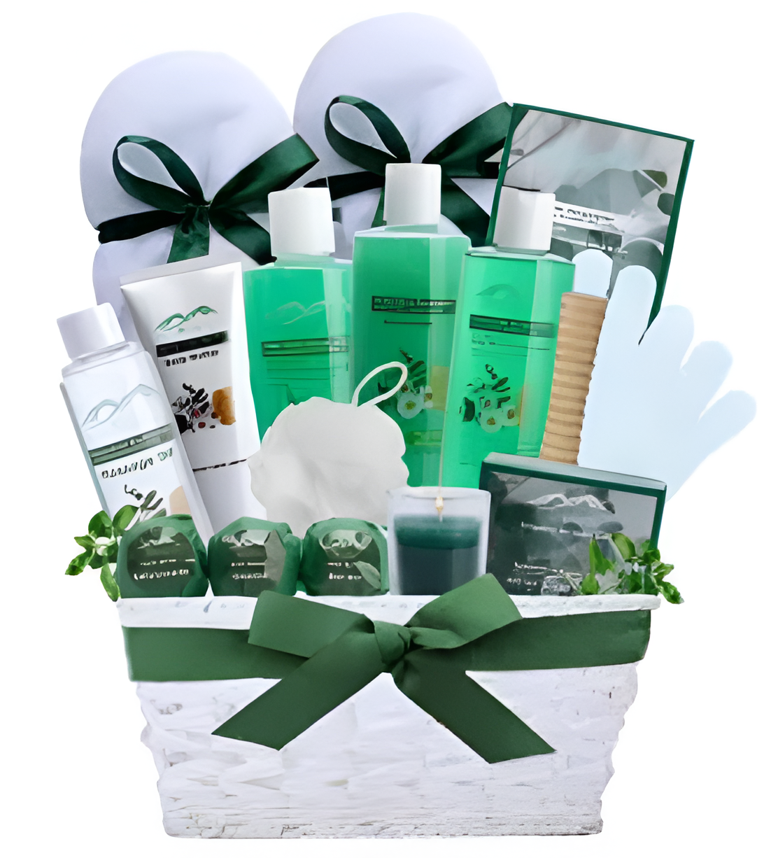 luxurious Shampoo, Body Wash, Bubble Bath, Bath Caviar, Body Butter, Massage Oil, Soap Bar and Bath Bombs all in the signature eucalyptus & spearmint scent. FOR THE PREMIUM BATH BASKET: We top off this basket with skin reviving hand mitts, plush slippers, wooden massager, bath puff & scented candle! Redefine Luxury with this 1-of-a-kind Aromatherapy Gift Collection! ALL-NATURAL INGREDIENTS: All products in the basket are 100% natural and expertly formulated to nourish and revitalize the skin. contains ingredients that promote natural skin healing such as Vitamin E, Shea Butter & Premium Therapeutic Grade Essential Oils. Contains No Parabens, Sulfates or other harmful chemicals and is safe even on sensitive skin.
