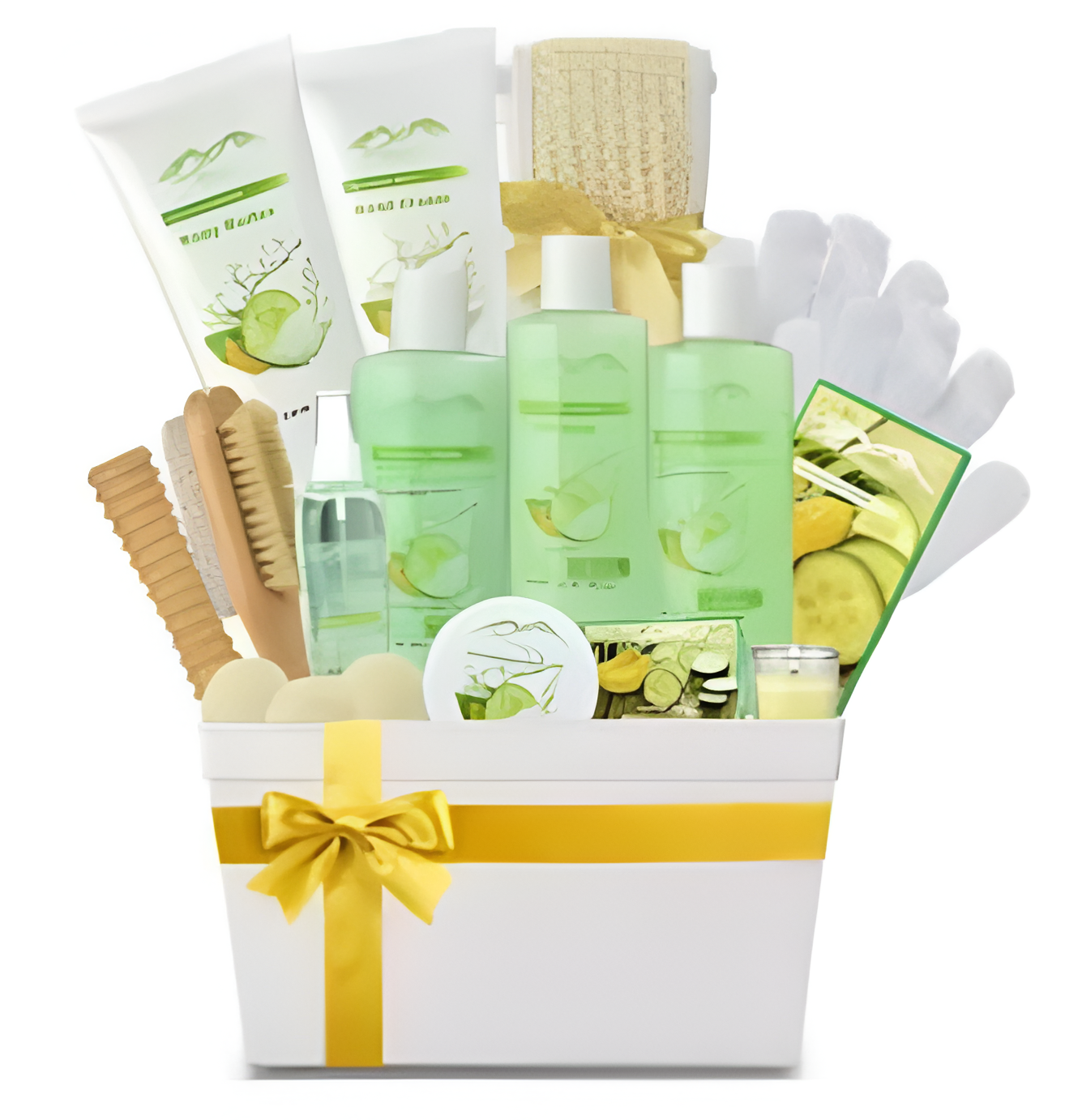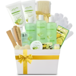 SENSATIONAL BATH ACCESSORIES this set includes Skin Reviving Hand Mitts, Pumice & Nail Brush Scrubber, Wooden Massage Stick, Loofah, Mesh Bath Pouf In addition to Luxurious Shampoo, Body Wash, Bubble Bath, Bath Salts, Bath Caviar, Hand Cream, Body Butter, Fragrance Mist, Handmade Soap, 3 Bath Bombs, & Aromatherapy Candle – all in beloved Cucumber & Melon scent For the PREMIUM COLLECTION we make it even better with Cucumber & Melon Essential Oil Hand Lotion, Body Butter, Body Mist, Bath Bombs & top it off with the Plushest Luxurious spa slippers to ensure the best spa experience.