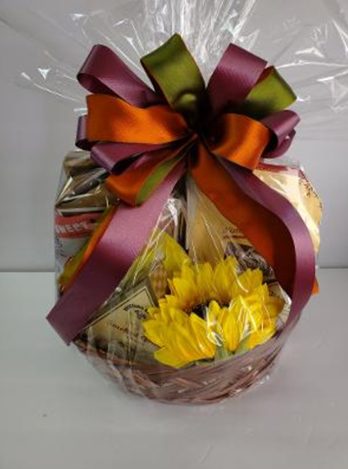 This beautiful fall theme gift basket is filled with sweet and savory gourmet treats like: Pretzels, nuts on the run flavors nuts, lemon cookies, trail mix, crackers, chunk nibblers, gouda cheese, sugar cookies, italian assorted cookies and natural life gourmet dried fruits . YUMMY FOR THE TUMMY