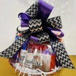 This a beautiful wicker basket is filled with the finest chocolates from around the world. Great for a office to share for a “Thank You” gift during the holidays. anyone who enjoys good chocolates will appreciate this gift . Send to a family for the holidays, this gift basket is perfect for anyone. Topped with a beautiful hand made Silver, black, Purples bow.