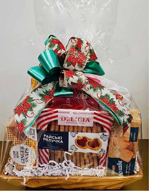 This unique gift is created in wicker basket topped with a beautiful poinsettia handmade bow . We have filled it with a variety of delicious cookies from around the world like France * Italy * Switzerland * Ukraine * Poland * Gavottes French Mini Crepes with Boursin Cheese Swedish Orange Gingersnaps Vicenzovo Strawberry Ladyfingers Cookies (Choco Glazed) Lovita -ORANGE JELLY Cookies FLORIDA w/CHOCOLATE DROPS Cookies PARADISE APPLES chocolate wafers Cookies Puff Pastry SUGAR MARINI SAVOIARDI Cookies DO KAVA w/BUTTER VANILLA coconut rolls danish style butter cookies