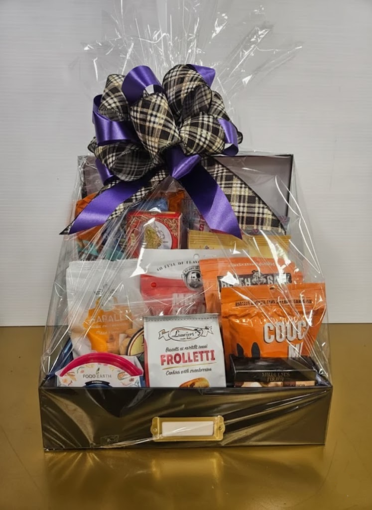 This Sweet Memories Gift is arranged in a photo box 13 x 13. This can be easily reused with holiday photo memories or vacation pictures. Apricot filled croissants, Balocco Milk & Vanilla IIlian wafer bars, Salted Butter Caramel and Vanilla Galettes, Mulino Bianco Tarallucci Italian cookies Mediterranean Vegetables Bruschetta Chips Tesoro Amarena Fabbri Puff Pastry Terre di Puglia Pizza Taralli , Gouda, Black Olive Hummus, Italian cranberry Cookies, Scrocchi Italian Thin Crackers, Spritzal Keylime Cookies Bites, Cinnamon Vanilla Glazed Nuts, Pears Snacks Memphis Style BBQ Cashews B’cuz Strawberry-Mallow Ganola Bites, Southern Mojo Spice Couch Mix, Healthy Life Assorted Nuts, Beach Bark Butterscotch Brittle, E.Wedel Dark Chocolate Tiramisu Filled Chocolate E.Wedel Chocolate Filled With Coconut