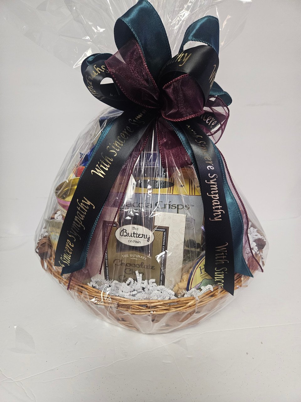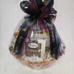 This beautiful wicker tray is filled with delicious sweet and savory gourmet treats. Butter Toffee Pretzels Butter Crunch Popcorn Smoked Almonds Vineyard Estates Cheese Straws Chocolate Chip Cookies Classic Lemon Drops salted caramel cookies cranberry harvest medley peppermint popcorn crespini italian breadsticks Gavottes’ Crepe Dentelle Cookies Balocco Novellini Biscuits hawaiian sweets Coconut Chips hawaiian sweets Chocolate Brownie Crisps